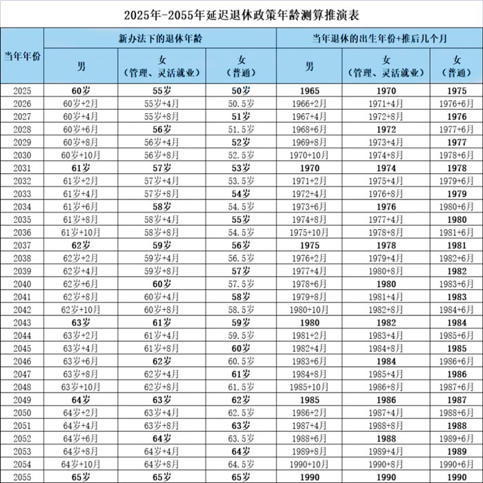 查找2025年最新退休年齡表