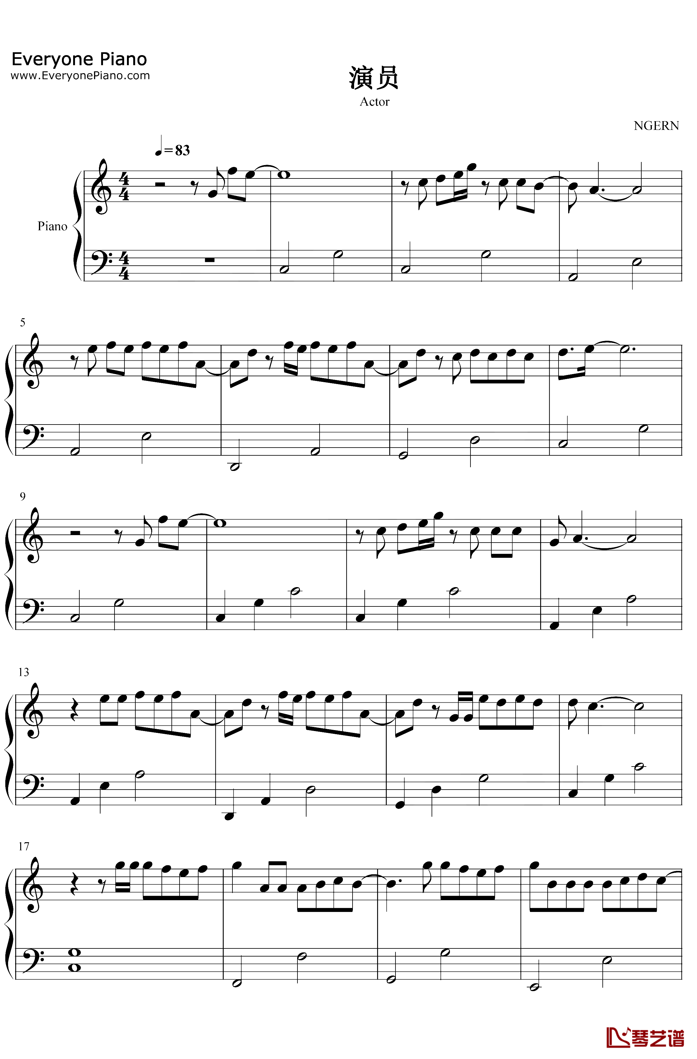 學(xué)習(xí)《演員》琴譜步驟(適合所有水平)