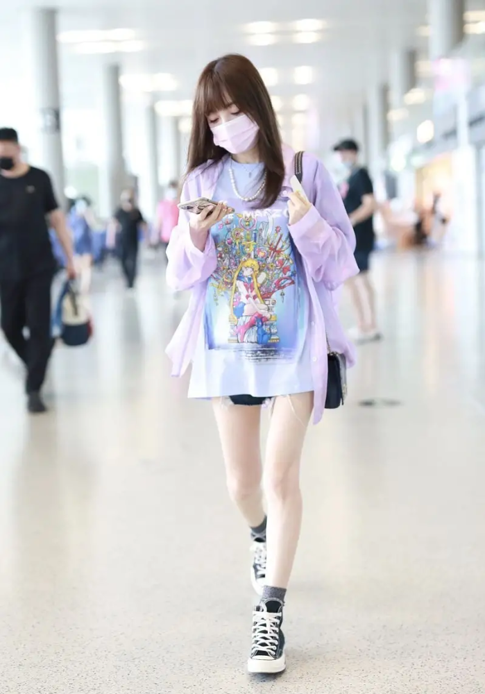2、搭配短裙:短裙與動(dòng)漫露臍裝的組合充滿青春活力,展現(xiàn)甜美少女感。