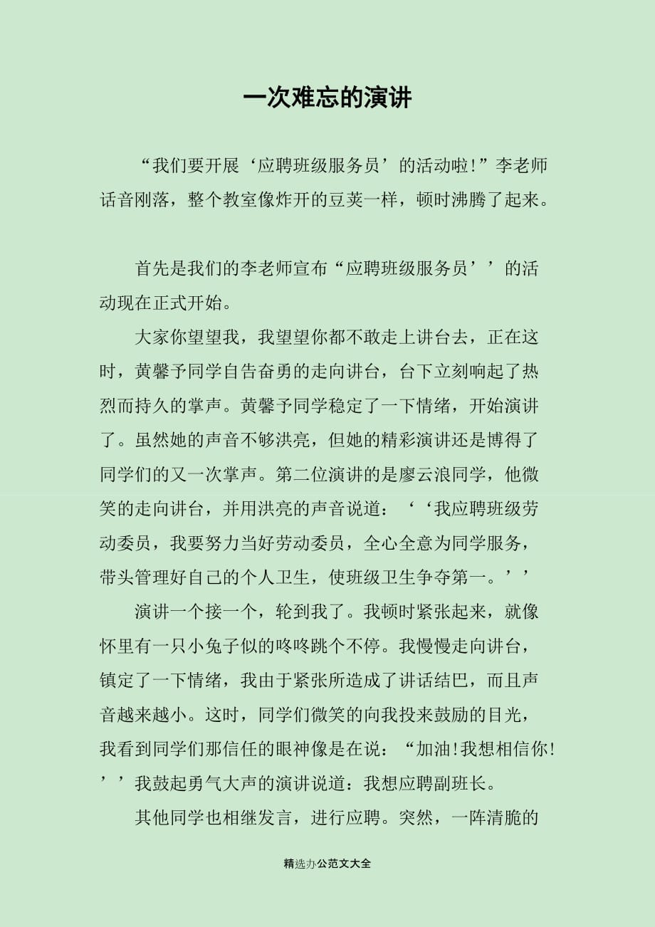 一次難忘的演講比賽讓人印象深刻,參賽選手們激情洋溢,口才出眾,展現(xiàn)出非凡的演講技巧。比賽過程中緊張刺激,觀眾們的掌聲不斷響起,激勵著選手們發(fā)揮出更好的水平。這次比賽不僅是一次展示才華的機(jī)會,更是一次鍛煉自我、提升能力的難得經(jīng)歷。讓人難以忘懷,留下了深刻的印象。